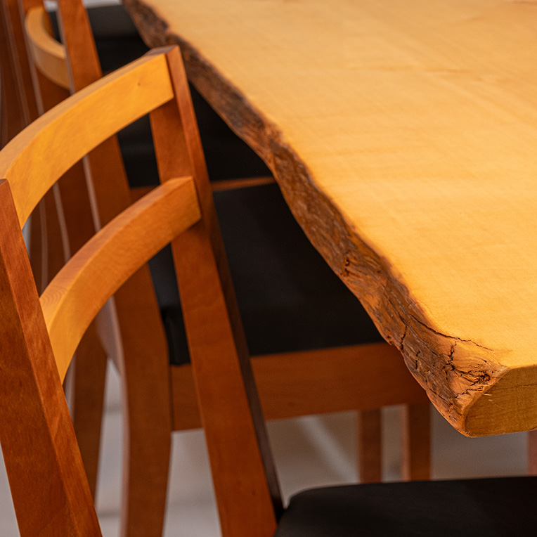 Retaining the dramatic natural edge of the timber, the table’s considered design makes a feature of the rare material. Anton’s aim was to go beyond the usual reliance on the timber of natural edge slab tables
