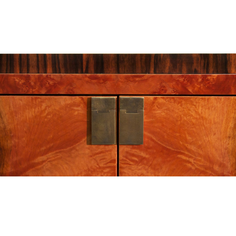 Tasmanian Burl Myrtle, Macassar Ebony with aged Brass handles.
