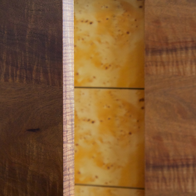 Fiddleback Tasmanian Blackwood, with Birdseye Huon Pine internal drawers.